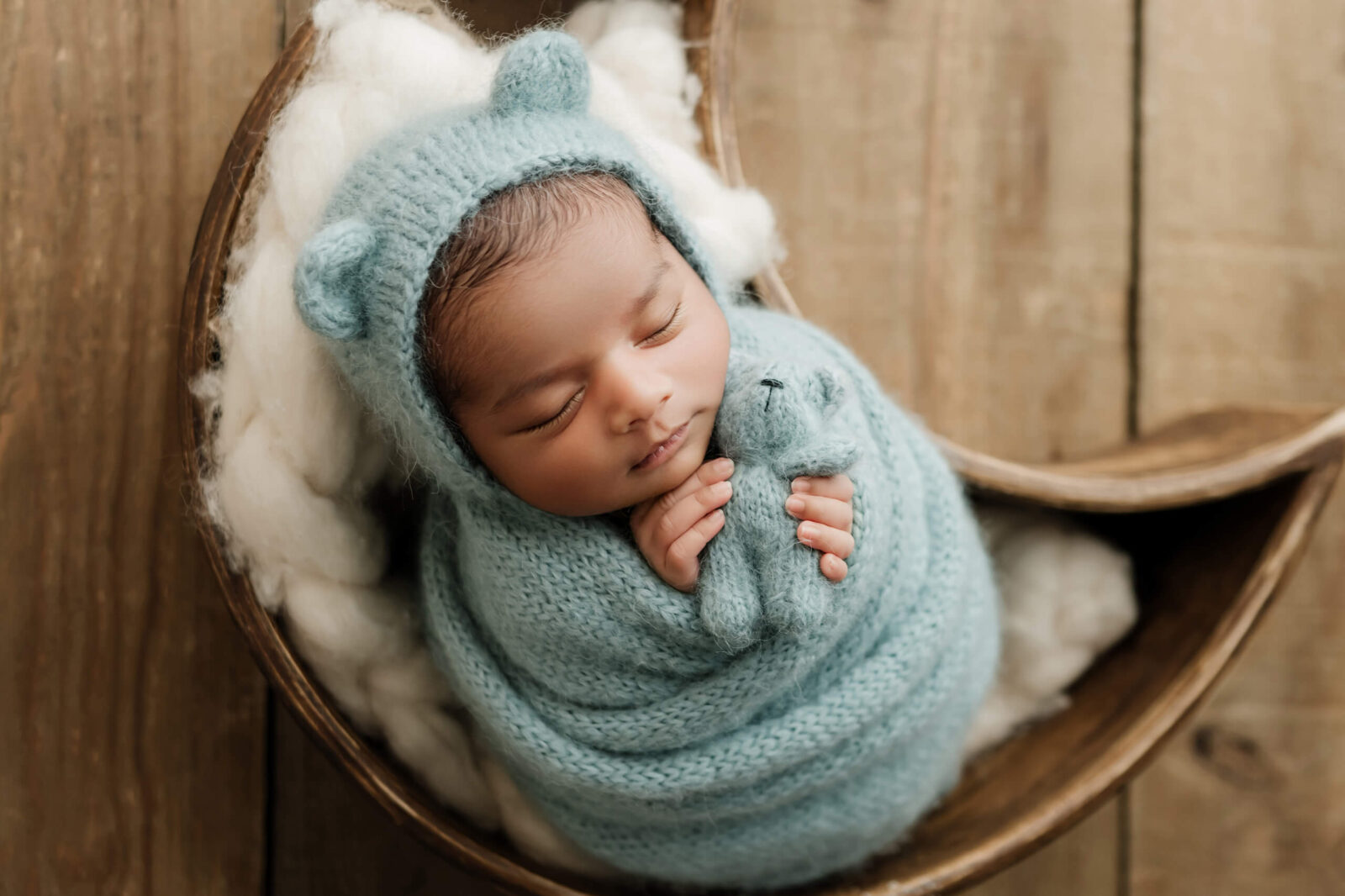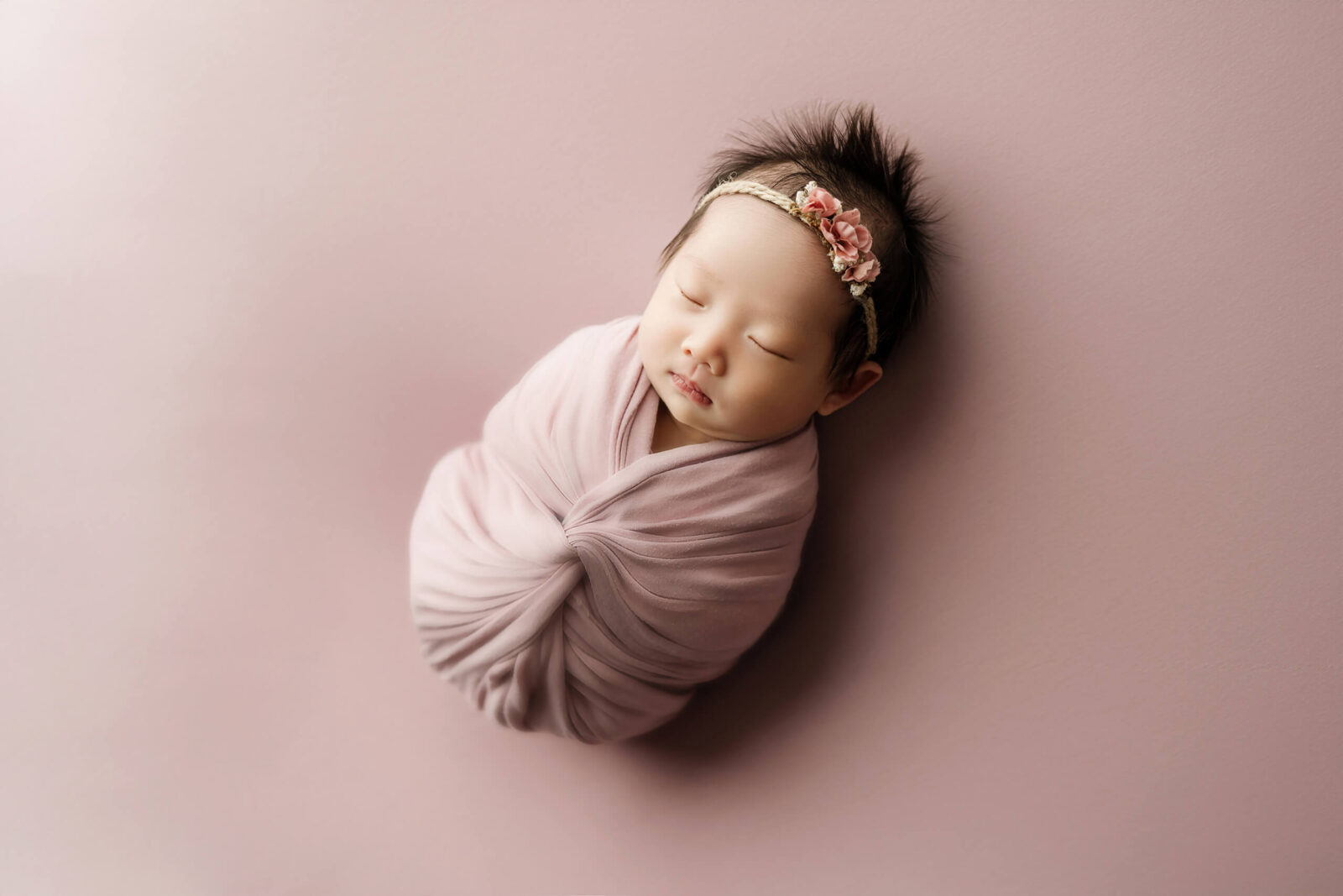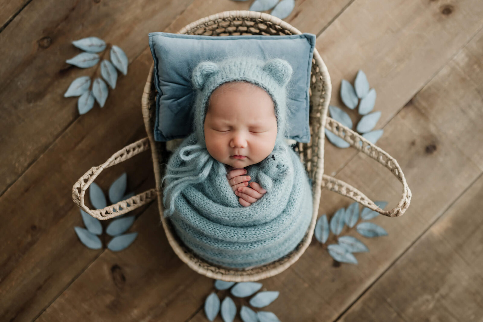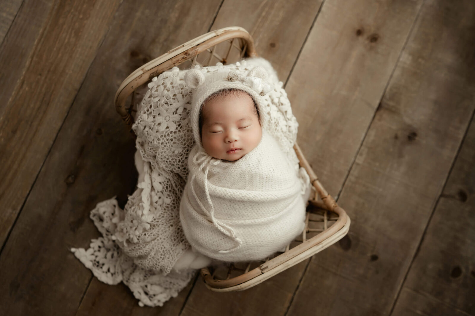Wrapped posing is gentle, efficient, and naturally calming for many babies. Because your baby stays wrapped, we can move through setups smoothly without repeatedly transitioning your baby in and out of different positions. That is a big part of what allows the session to stay shorter.